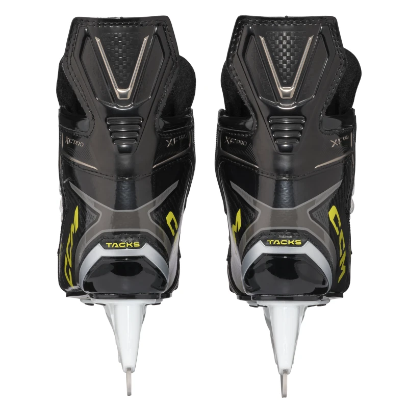 The CCM Tacks XF Pro is featuring the new One-Piece Boot POWER with innovative FORS composite construction. Engineered to be lighter, more responsive, and more durable, these skates maintain pro-level stiffness ideal for intense north-south skaters. The PowerFlex Tendon 3.0 enhances your range of motion for maximum stride extension, offering increased protection and durability. The improved game-ready fit provides better heel lock and a tighter forefoot wrap for a snug and comfortable dynamic fit, perfect for elite skaters. With ADPT memory foam around the ankles and additional responsive foam liner layering, these skates are so comfortable you might never want to take them off.