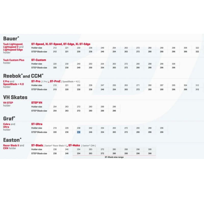 The STEP Black Steel STPROZ CCM Speedblade Skate Runners are engineered for high-performance skating on the ice. Made with premium Black Steel, these runners offer exceptional edge retention and stability, allowing players to make precise cuts and quick turns. Designed to fit CCM Speedblade holders, they provide a seamless integration for optimal energy transfer. Trusted by professional and amateur players alike, the STEP Black Steel STPROZ Runners are a top choice for those looking to enhance their skating performance.