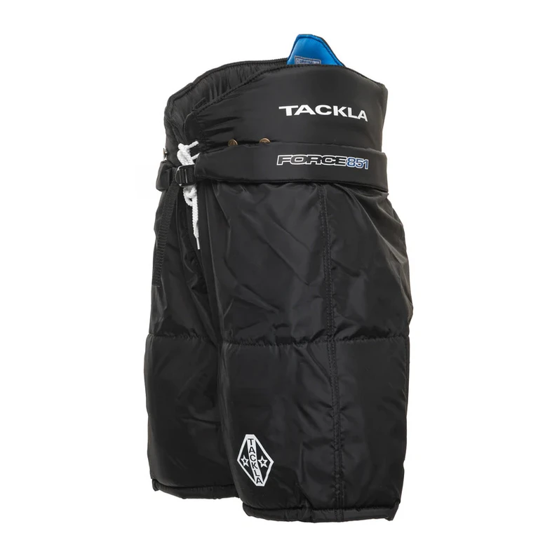 The Tackla Force 851 Senior Ice Hockey Pants feature a traditional fit. Constructed of 400 Denier polyester, these pants were constructed with protection and durability in mind. Additionally, the Force 851 Hockey Pants feature a full protective belt cover keeping players protected around the waist against impact like sticks or blocked shots.